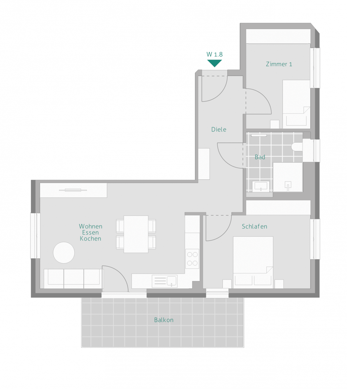 - Inkl. Einbauküche (Festlegung Graf Wohnbau GmbH)