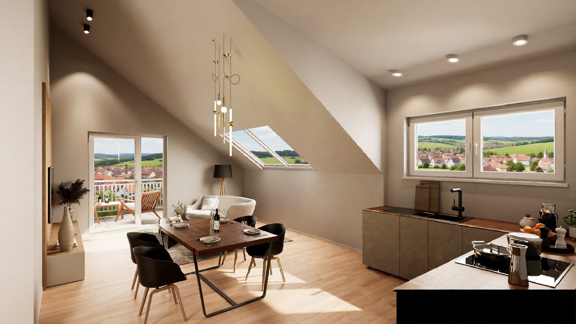 - Offene Küche & Wohn-/Essbereich mit Zugang zum Balkon